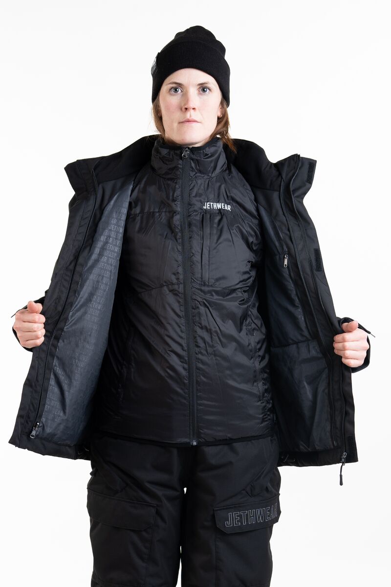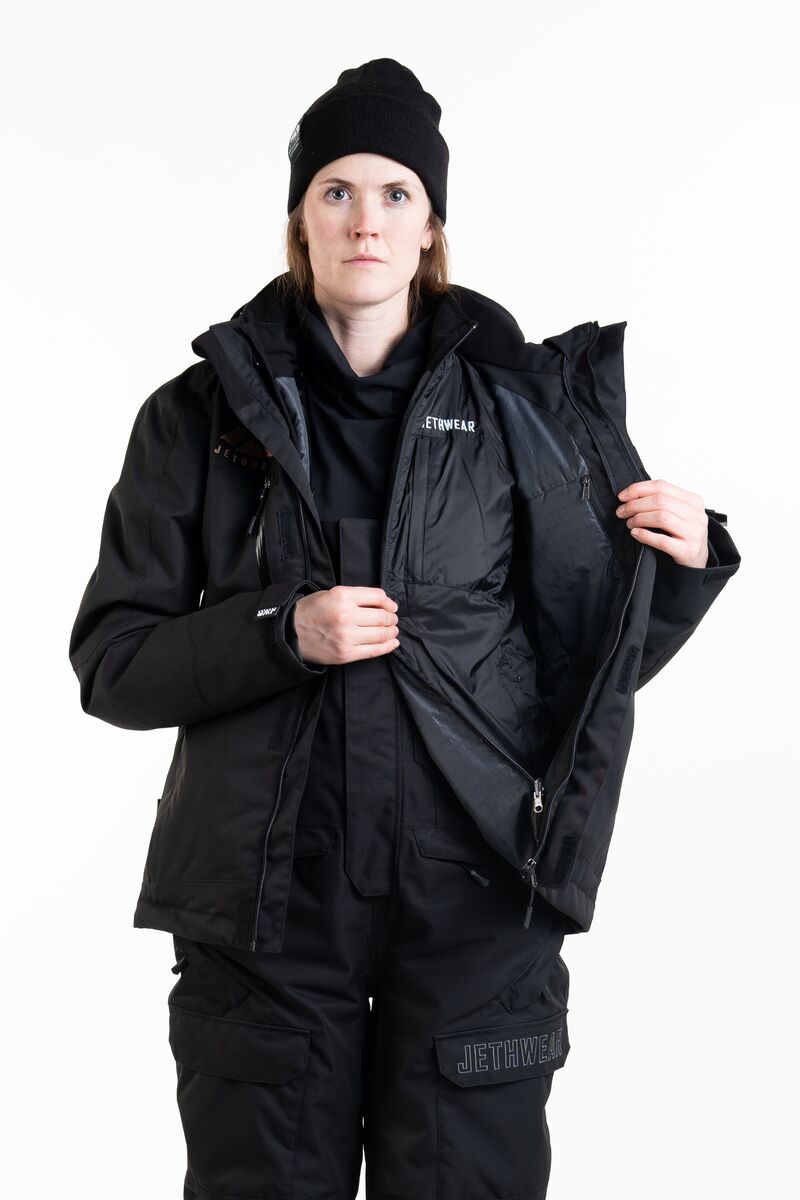 Jethwear Adapt on suunniteltu niille, jotka haluavat selvitä yhdellä takilla koko talven läpi. Irrotettavan sisätakin ansiosta voit muokata lämmittävyyttä olosuhteiden mukaan: pelkkä ulkotakki riittää kevyempiin keleihin, sisätakki tuo lisälämpöä vapaa-aikaan, ja yhdessä käytettynä saat erittäin lämpimän kokonaisuuden kovimpiin pakkasiin. Adapt on täydellinen valinta, kun tarvitset monipuolisuutta ja mukautuvuutta – yksi takki, kolme eri kombinaatiota.