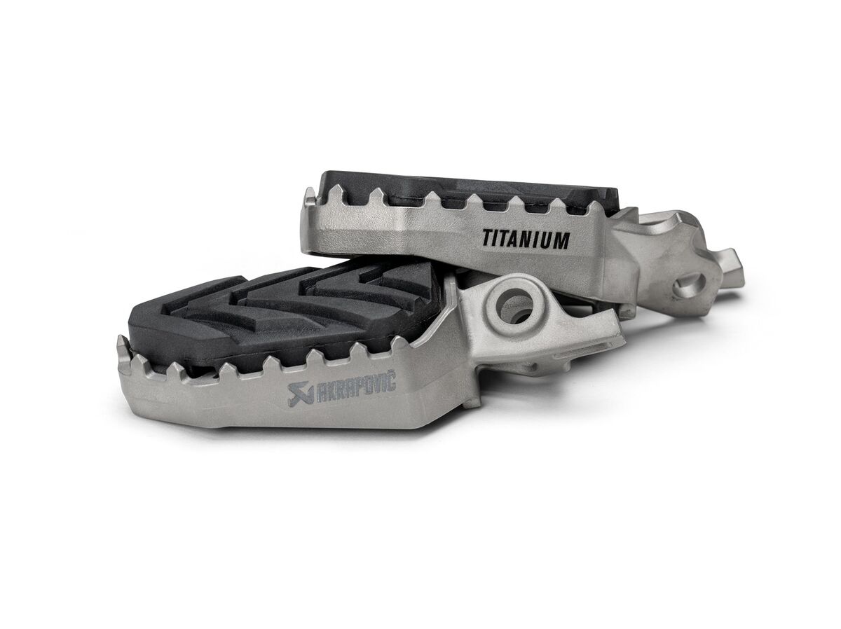 Meticulously cast in the company’s in-house foundry using lightweight Grade 5 titanium, a material with high strength and excellent corrosion resistance, these one-piece footpegs were designed with the demanding engineering objectives of high mechanical strength and extremely stable construction, ensuring stability, grip, and comfort for the rider on- and off-road.