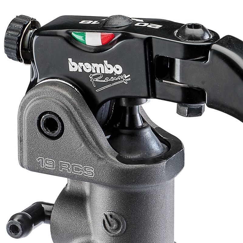 This brake master cylinder has the RCS system, patented by Brembo, for adjustment of the lever centre distance which allows you to obtain the ideal feeling between rider and bike. In just a few seconds using a simple screwdriver you can make the braking system more aggressive and reactive (20 mm) or softer and modulable (18 mm).